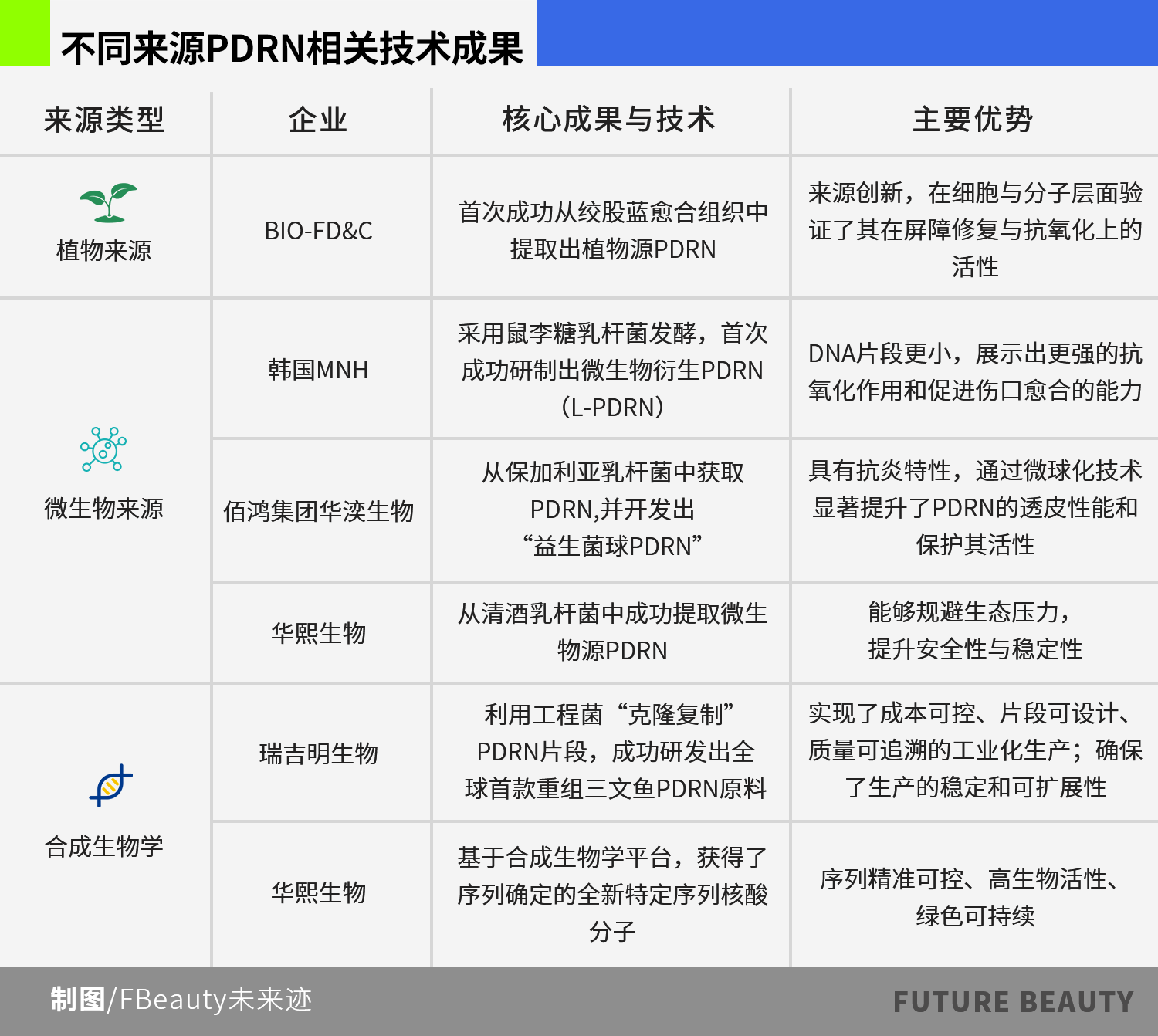 另一方面,围绕PDRN性能提升,各大技术企业从序列设计、超分子组装等维度展开较量。